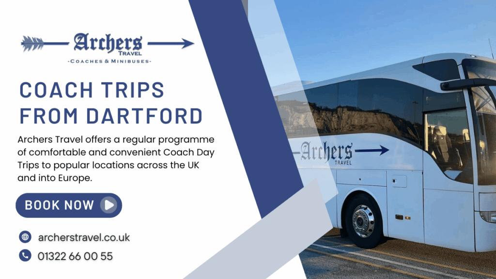 With convenient pick-up points in Dartford Home Gardens, Temple Hill, and Fleet Estate as well as across South East London, easy booking options, and a reputation built on reliability, value, and excellent service, Archers Travel is your trusted choice for Coach Trips from Dartford.